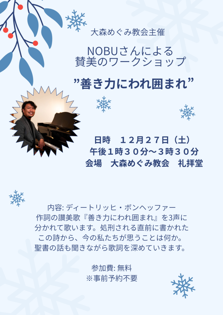 賛美のワークショップ NOBUさんによる 12月27日(土)