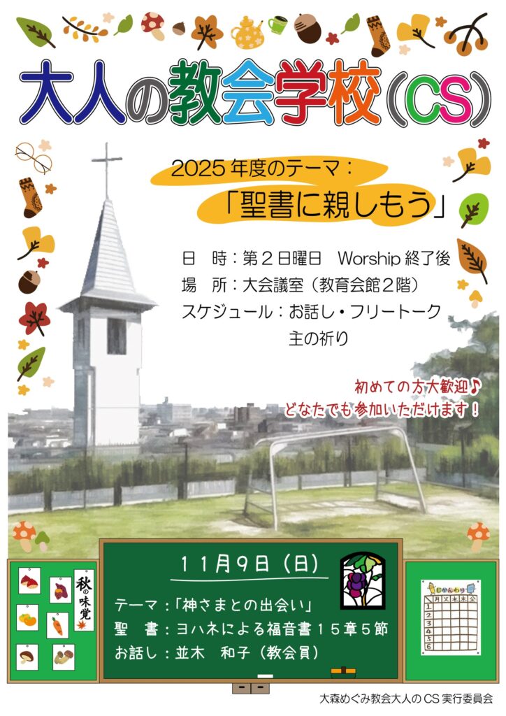 - 2025年11月9日(日)午前 9時40分頃から(Worship終了後)