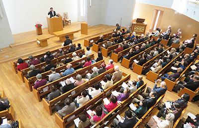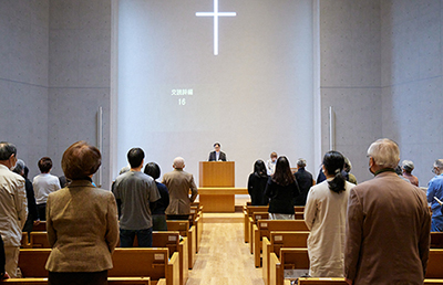 毎週日曜日午前10時30分より、礼拝を行っています。 心静かに、聖書の言葉に耳を傾け、讃美歌を歌い、ともに祈りをささげます。